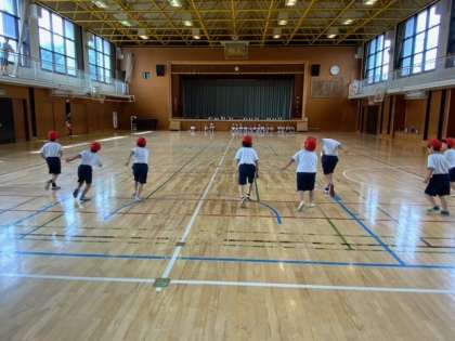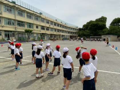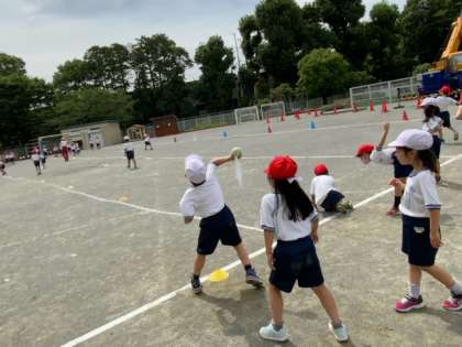 体育で体力測定に向けて、走る、投げるについて動きの練習をしています。