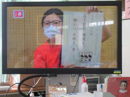 今週のめあて「ろうかも階段も静かに右側を歩こう」です。