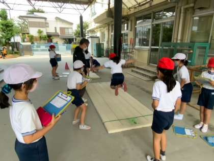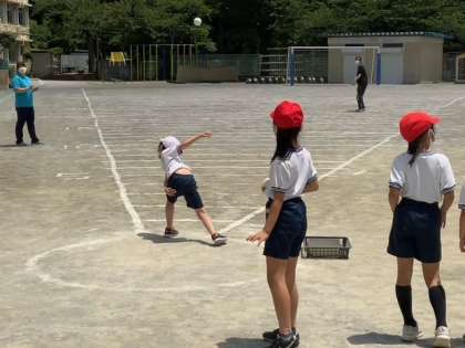 3、4年生の体力測定です。専科の先生や講師、主事さん方も手伝ってくださってます。