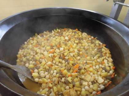 今日も給食室の大釜でたくさん、じっくり煮ました。