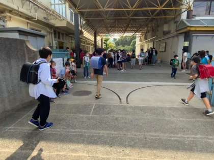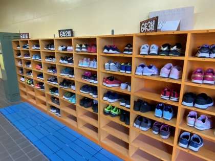 1年生が正門に、代表委員がまごころの石の前に立って、朝のあいさつをしています。さわやかな1日の始まりです。他にも6年生のくつ箱のくつがとてもきれいに揃えられていたので、嬉しくなり写真に収めました。