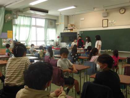 6年生からたてわり班のめあてを聞いた後、一人ひとり自己紹介をしました。初めて顔を合わせる他学年の友達に緊張している様子が見られましたが、6年生の温かいサポートのおかげで、和やかに第一回目が終了しました。