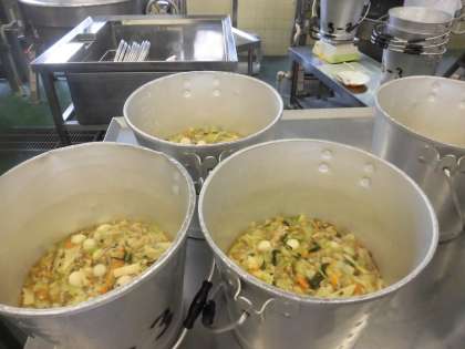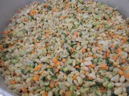 ☆今週は「歯と口の健康週間」です。歯と口の中の健康を見なおす1週間となってます。今日のビーンズサラダに白いんげん豆とひよこ豆をサラダに入れました。少し固めに茹でて噛みごたえのあるサラダの完成です。子どもたちもよく噛んで食べていました。