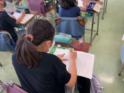 国語で「一つの花」の3の場面で「一つだけ」という言葉が出てこないのはなぜなのかをそれぞれが考えをまとめています。
