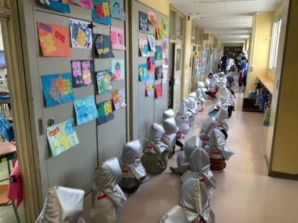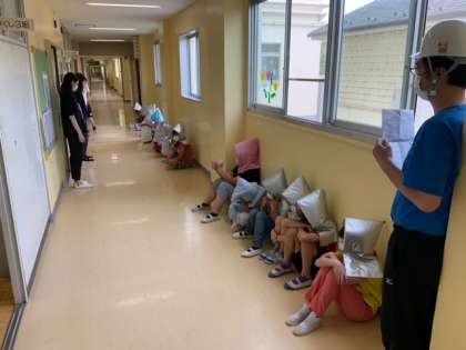 大きな地震を想定しての避難訓練です。とても真剣に取り組めていました。緊急事態宣言下ですので、今回は引渡し訓練は行いませんでした。ご家庭でも防災についてお話しいただけると嬉しいです。