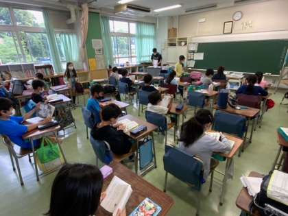 読書旬間です。朝の支度が終わった子どもから自分の席で読書をしています。しんとした空気感が生まれとてもいい時間です。