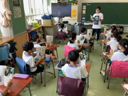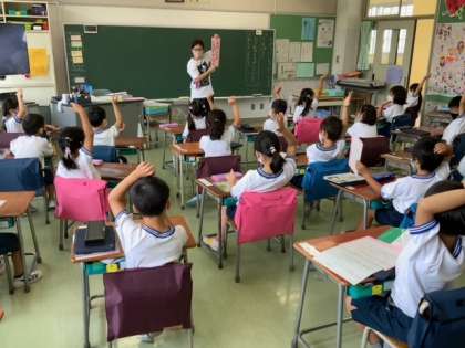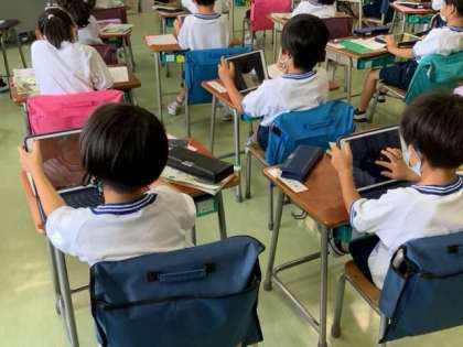 国語の「くちばし」で、オウムのくちばしについて詳しく読んでいきます。文章が「もんだい」と「こたえ」になっていることをタブレット端末に線を引いて確認をしています。