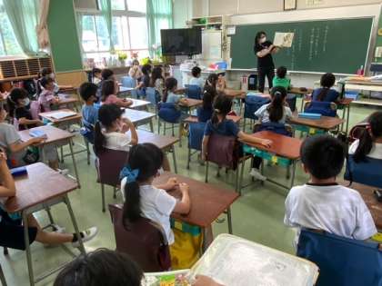 今週も読書旬間の一環で、教員による読み聞かせです。いつもの担任の先生以外による読み聞かせです。副校長先生も3の1での読み聞かせです。子どもに感想を聞いたところ、「不思議な感じがした」「とてもおもしろかった」などの声が聞かれました。