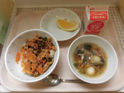 ☆今日は「キムチ丼」です。白菜キムチを使い作りました。スタミナもつく1品です。少しピリ辛ですが、ごはんがよく進みます。