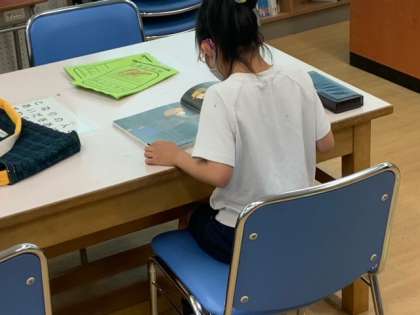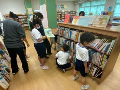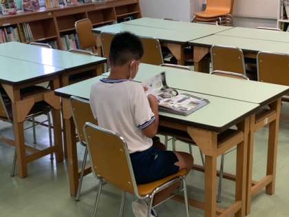 図書室での読書活動です。好きな本を選んで、読んでいます。