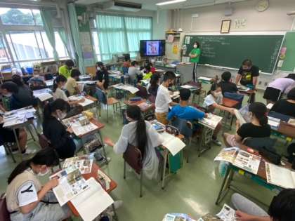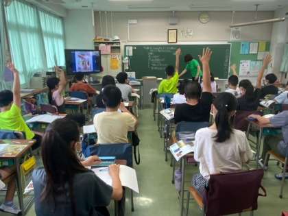 社会で、「米づくりの広がりによって、むらの様子はどのように変わって来たのか」というめあてを持って学んでいきます。友達と考えを交流させ、考えを発表しています。