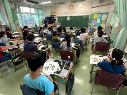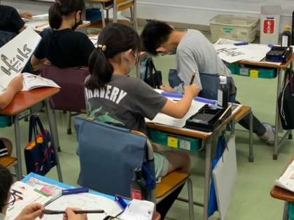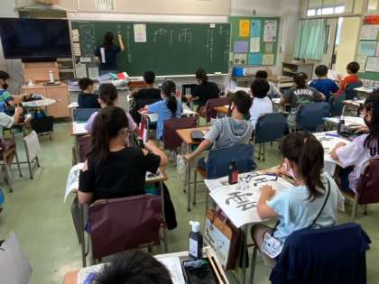 書写の毛筆で「雲」を書きます。上下の部分の組み立てに気をつけて書いていきます。