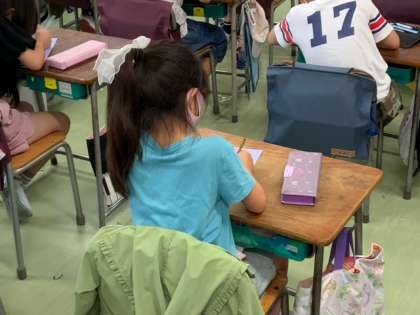 テストを終えた人から、短冊に願い事を書いていきます。1つに絞ることが大変そうです。