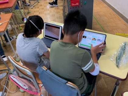 きゅうりについてタブレット端末で調べました。その後は、興味があることを調べています。