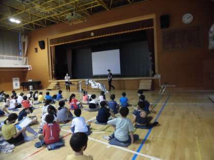 子どもたちは最初は防災と聞いてもあまりピンと来ていなかったようですが、動画を見ながら、自分たちのよく知っている場所が広域避難場所や指定避難所に指定されていることや、通学路で見かけるもの、遊んでいる公園で見かけるものが防災設備の一つであることを知ると、興味がわいてきたようです。