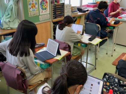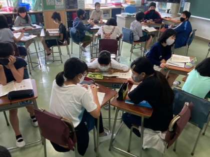 国語や総合的な学習で、「私たちにできること」を友達と考えを交流したり、自分で考えたりしています。
