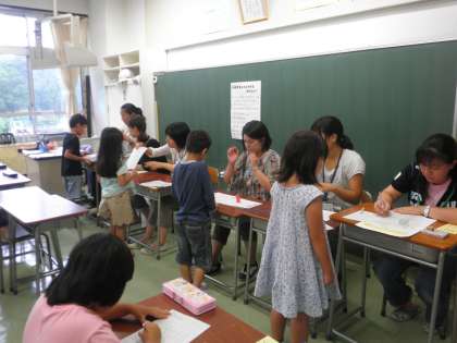 いつもの通り保護者のボランティアの方以外にも、今回は上祖師谷中学校の生徒さん、白百合女子大学の学生さんとたくさんの方々にお手伝いを頂いています。たくさんのボランティアの方々で、充実した学習ができました。