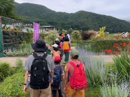 大石公園に散策で来ました。お花がきれいです。楽しみにしていたソフトクリームを買って食べます。