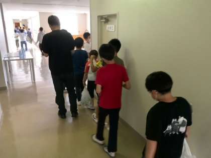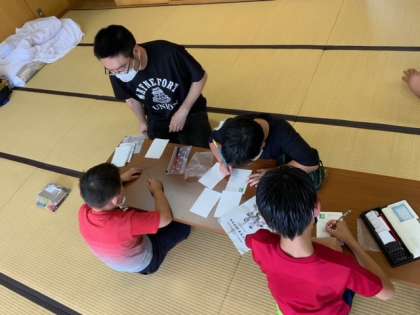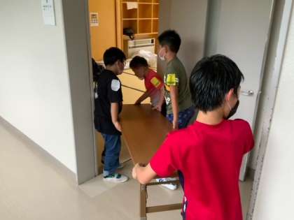 学園に戻ったらさっそく入浴です。準備を急いでしてお風呂に向かいました。その後は、長机を力を合わせて運び入れ、ハガキ書きです。