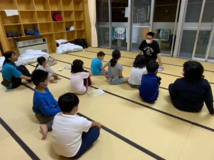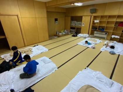 子ども会の後は部屋に戻って就寝準備です。更新が遅くなりすみません。