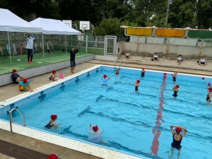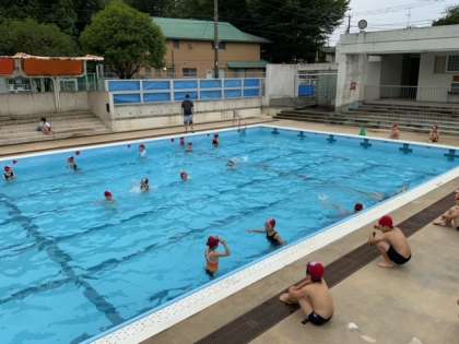 今日は、3、4年生の水泳です。曇っていますが、気持ちよさそうです。約束を守って楽しく泳いでいます。