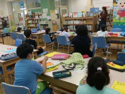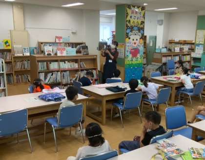 図書の時間での読み聞かせです。オバケとスカイのお話です。