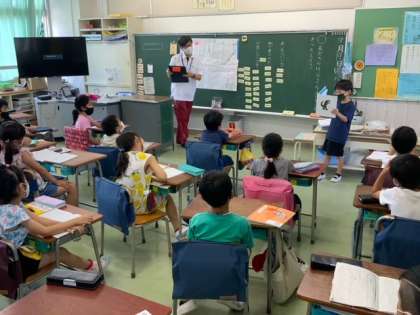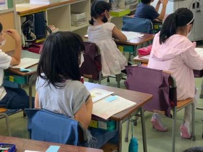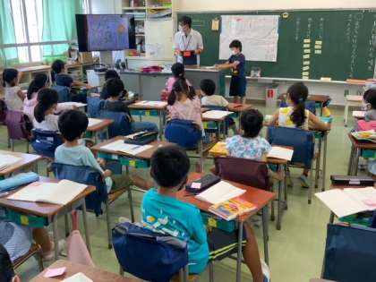 友達の発表のよいところを見つけることをめあてに、「あったらいいな」「町で見つけた」「お気に入りの本」の発表です。