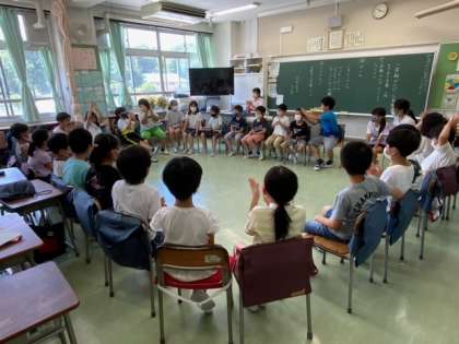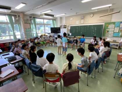 1学期がんばったね集会です。それぞれが紹介した後に、ゲームもします。