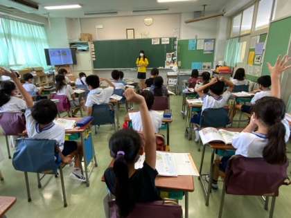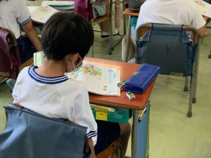 道徳で雨の日のバス停での並んで待つときの様子のことから「きまり」について考えていきます。