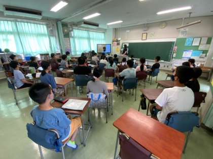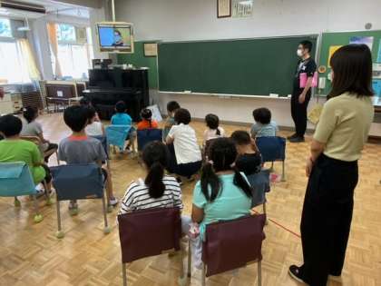 終業式を放送で行っています。児童代表の言葉では、1学期にがんばったことや成長したことが述べられました。42日の夏休みに入ります。安全に、よりよい生活を送りましょう。