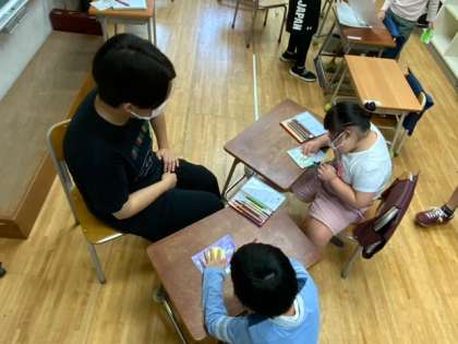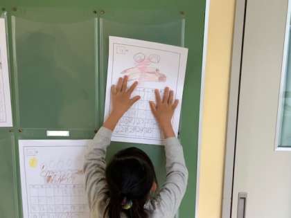 9月のカレンダーづくりをしています。数字を書いたり、季節の絵を描いたりします。