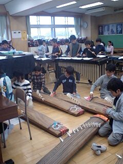 クラス全員、心を合わせて合奏を作り上げています。特にお琴の音色がきれいです。音楽発表会で披露します。