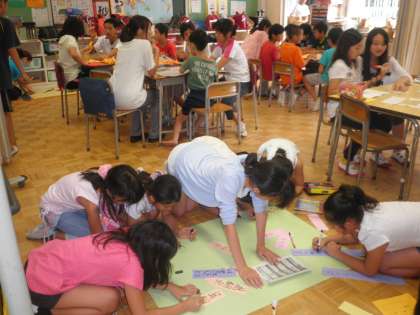 広報委員会では掲示板に貼る月行事予定と飾りをみんなで協力して作っていました。