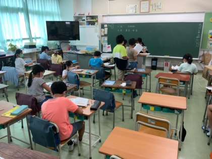 算数少人数でコース別に分かれて、10000より大きい数のまとめをしています。