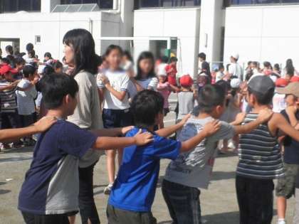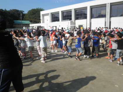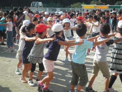 今朝の集会は、ゲーム集会で「ジャンケン列車」でした。ジャンケンをしてどんどん汽車が長くなるゲームです。