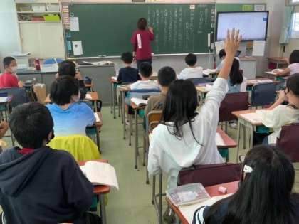 国語で戦時中の話である「たずねびと」を読んだ感想を交流し合っています。