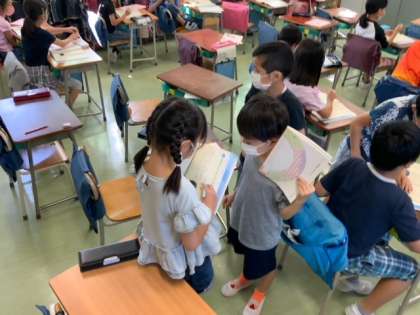 教科「日本語」で短歌を読み、思ったことや考えたことを書き、友達と意見交流をしています。