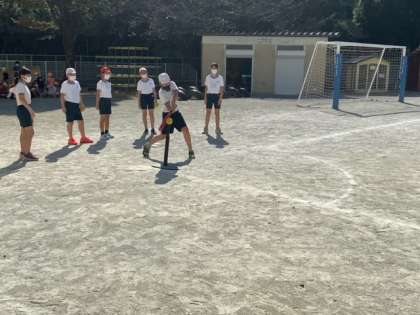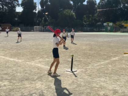 体育でベースボール型授業に取り組んでいます。ボールを打ったり、投げたり、受けたりすることが以前と比べて上達してきました。