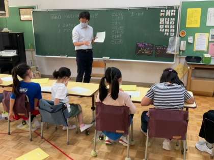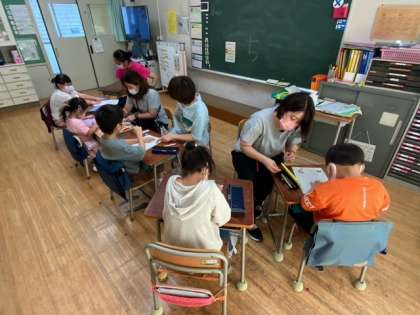 コース別に分かれて学習をしています。文章をよく読んで問題に答えたり、書写に取り組んだり、ひらがなの練習をしたりしています。