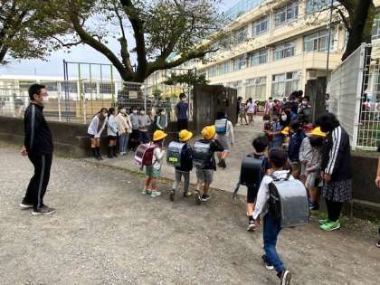 あいさつ週間です。校門には、2、5年生とつくし学級の子どもたちが立ち、「おはようございます」と、さわやかなあいさつが飛び交っています。