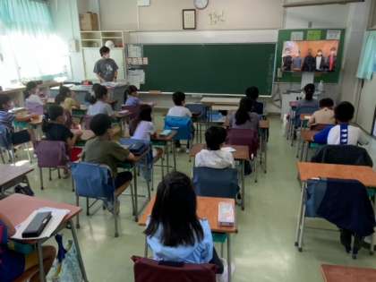 全校朝会は、放送で行いました。3年生の各クラスの様子です。6年生からは、清掃当番担当場所の一輪車や竹馬の後片付けについてのお願いもありました。6年生が率先して片付け、学校全体に呼びかける姿が素晴らしいと思いました。