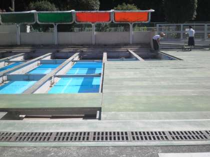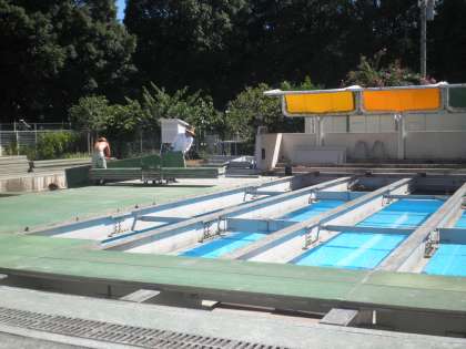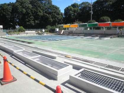 今日、明日でプールに鉄板の蓋をして、校庭として使用できるようにします。