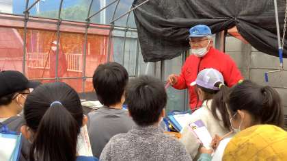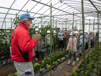 天気が不安の中、地域の農家さんのビニールハウスに見学に行きました。
