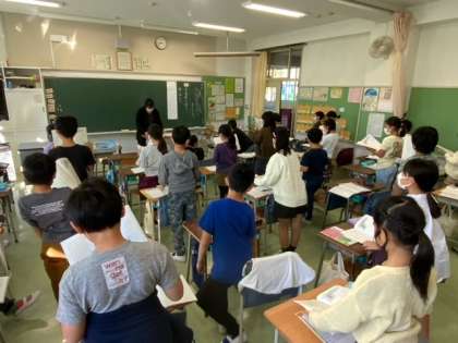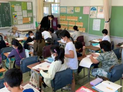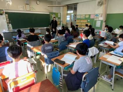 ?国語の「ちいちゃんのかげおくり」は、初めて出会う戦争文学です。生活、命、未来などの平和について主人公を通して読み深めていきます。今日は、5の場面です。