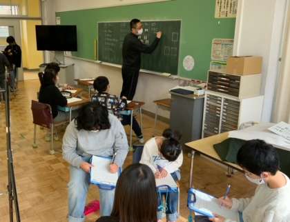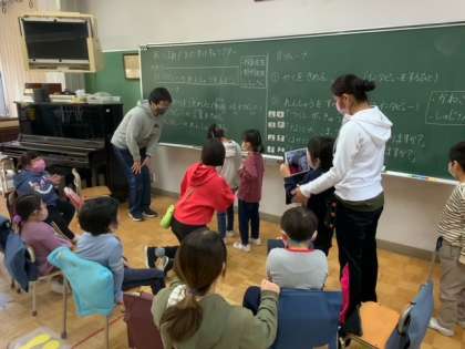 生活単元学習の「あつまれ!おたすけキャラクター」で、困っていることがないかを先生へインタビューする練習や台本を考えることなどに取り組んでいます。