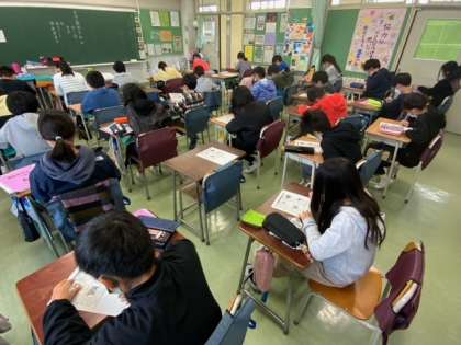 ?5、6年生は、NIE 教育で新聞記事を読み、感想を書いています。今回の記事は、ワクチン3回目、衆議院総選挙、メタン30%削減、旅くじの4つです。旅くじに興味を持った子どもが多くいました。