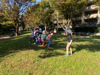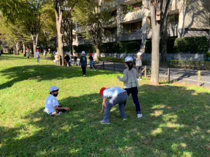 野川ビジターセンターの順番を待っている間に近くの広場で遊びました。その後、学校へ50分くらいかけて頑張って歩きます。そして、安全に気を付けて帰校できました。