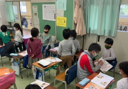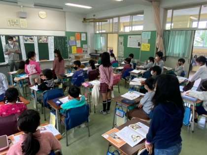 道徳「おばあちゃん お元気ですか」を読んで、父母や祖父母を敬愛し、進んで家の手伝いなどをして、家族の役に立とうとする心情を育てます。たくさん考えを交流させています。