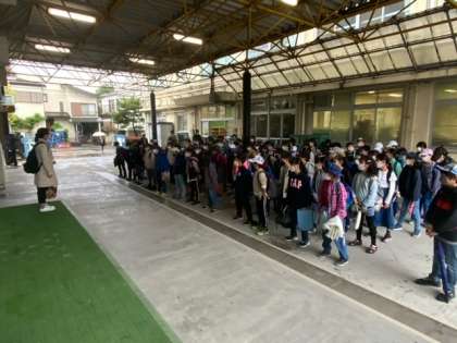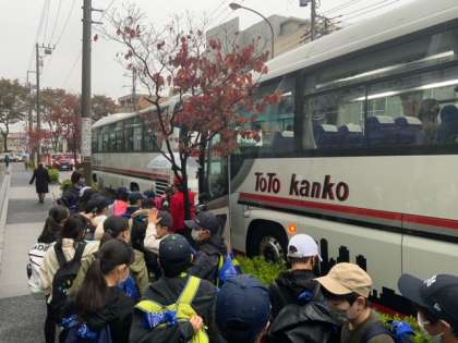 ?5年生は、川崎のJFEスチール東日本製鉄所への社会科見学に貸切バスで出かけます。出発の頃には雨が随分と小降りになりました。