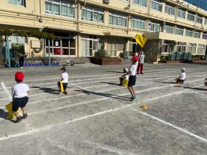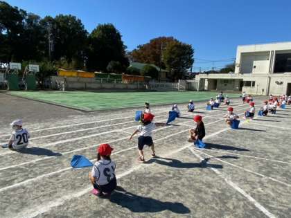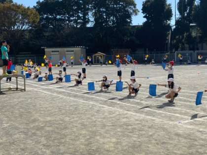 運動会の練習です。運動会まで1週間になりました。練習にも熱が入ってきています。立ち位置を確認したり、ウエーブを確認したりしています。